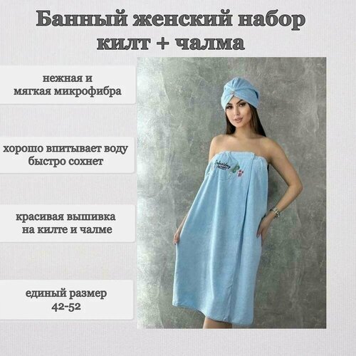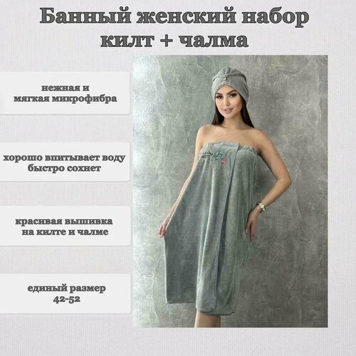 Банный набор женский из 2х предметов килт и чалма из микрофибры