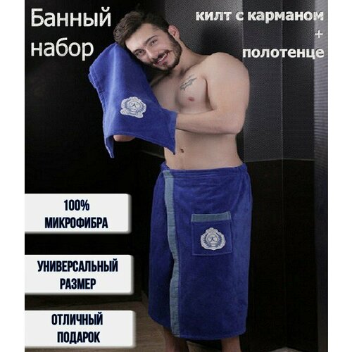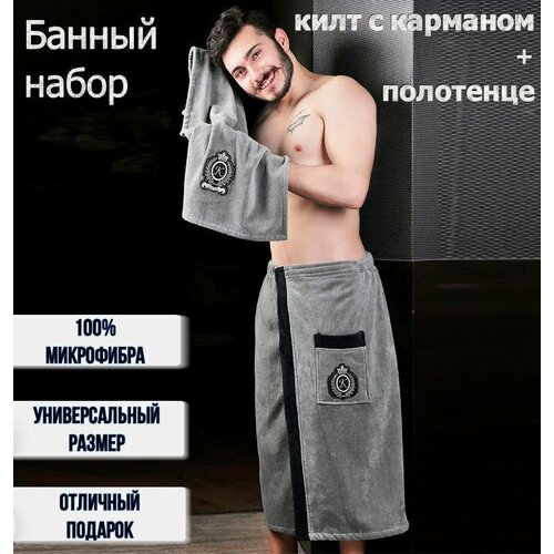 Банный набор мужской килт с карманом и полотенце