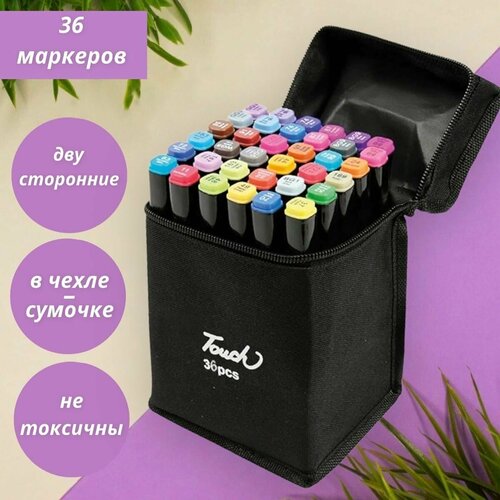 Двусторонние Маркеры для скетчинга 36 шт. в чехле-сумочке / Фломастеры для скрапбукинга и рисования / Скетч маркеры TATI market