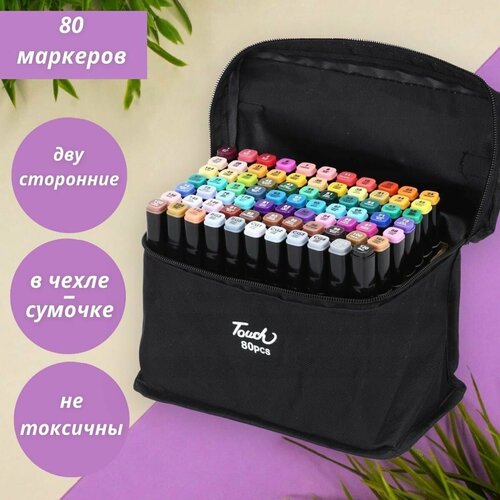 Двусторонние Маркеры для скетчинга 80 шт. в чехле-сумочке / Фломастеры для скрапбукинга и рисования / Скетч маркеры TATI market