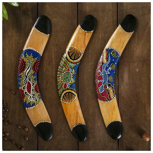 Бумеранг сувенир 40 см ручной работы из дерева албезия, микс Индонезия Бали TATImarket