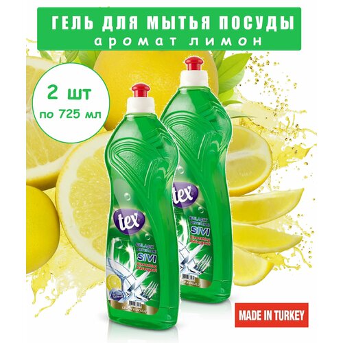 Средство для мытья посуды TEX аромат лимон 2шт по 725мл, производство Турция