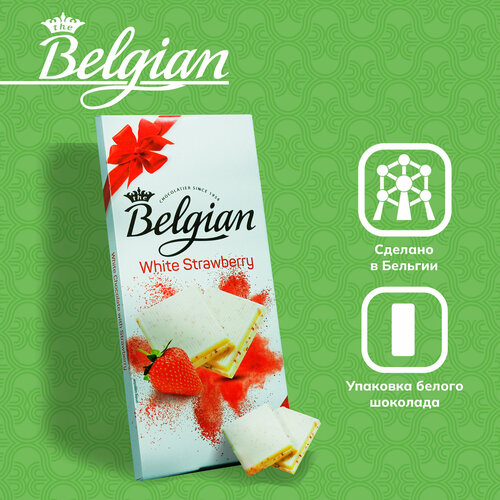 Бельгийский белый плиточный шоколад The Belgian с клубникой 100гр