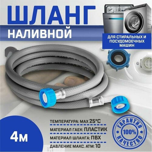 Шланг заливной для стиральных и посудомоечных машин 4 м/ Наливной шланг 4 м