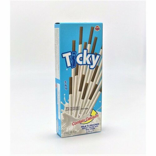 Ticky Бисквитные палочки Ticky покрытые молочным кремом, 20 г