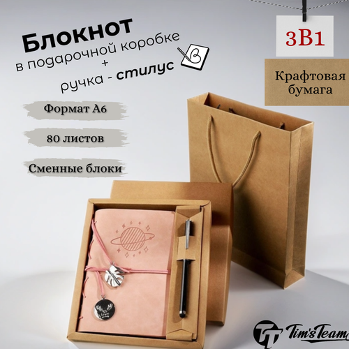 Блокнот с ручкой в подарочной упаковке розовый с крафтовой бумагой