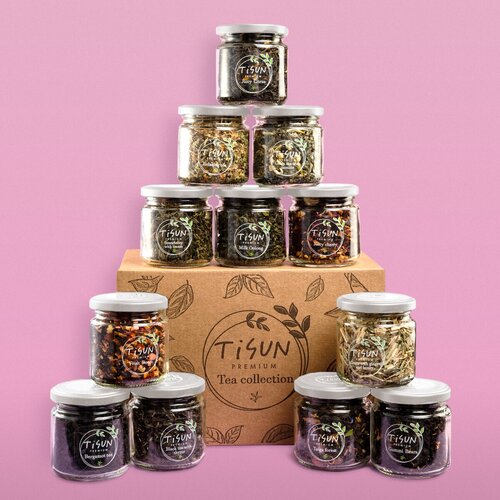 Чай подарочный набор 12 вкусов Tisun листовой черный зеленый улун каркаде / Подарок женщине и мужчине, учителю на выпускной, маме и бабушке