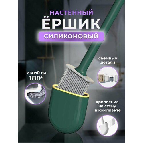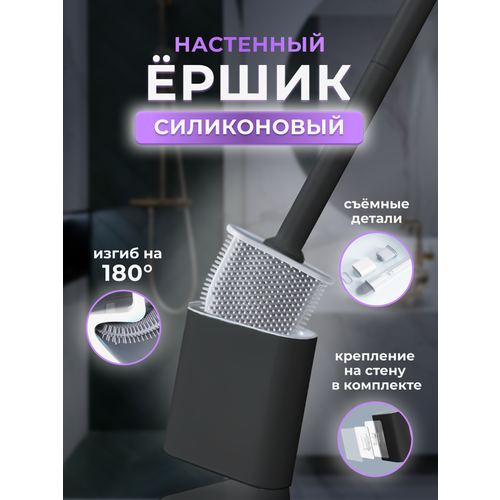 Ершик для унитаза напольный и настенный силиконовый, черный