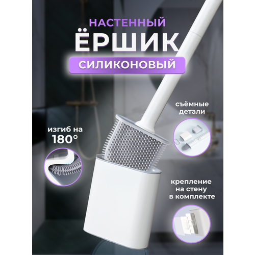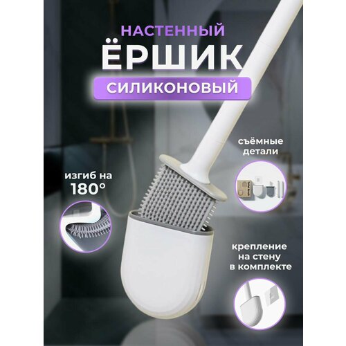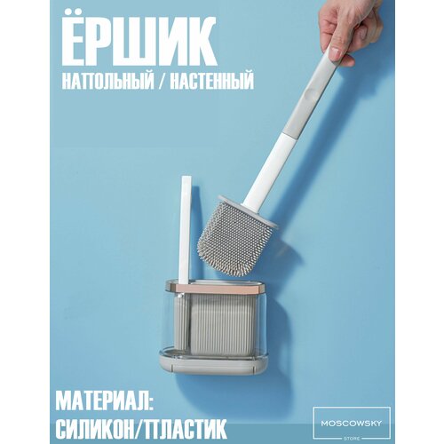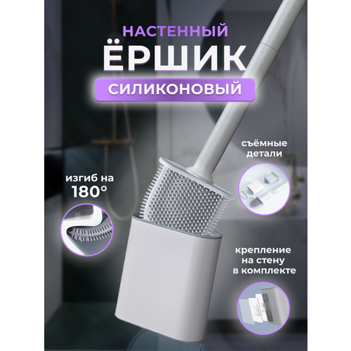 Ершик для унитаза напольный и настенный силиконовый, светло-серый