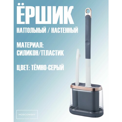 Ершик для унитаза напольный и настенный силиконовый, темно-серый