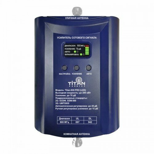 Репитер Titan 900 PRO (LED) Усилитель сотовой связи 2G и интернета 3G. Площадь действия до 1000 м2