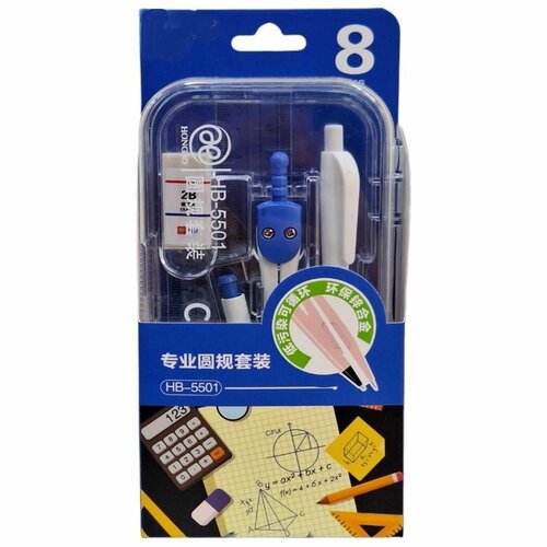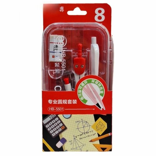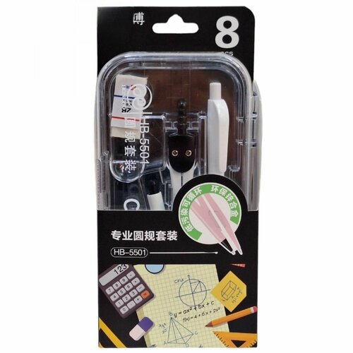 Набор чертежный 8 предметов: линейка 15 см, транспортир, 2 угольника, карандаш механический, циркуль