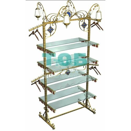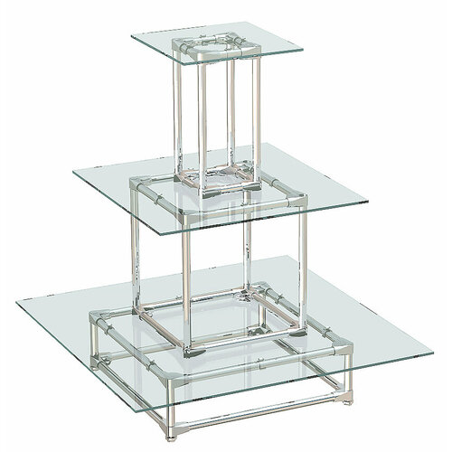 Хромированная пирамида с квадратными полками из стекла для магазина рукоделия CRAFT-ПР-ХР-02