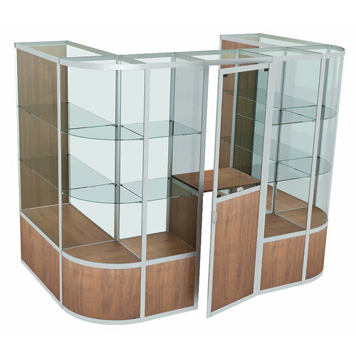 Металлический стеклянный павильон - островок пристенный с закругленными углами МСПО-06