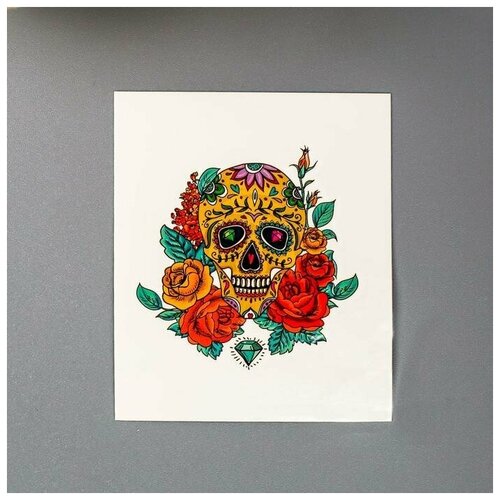 Татуировка на тело "Череп с розами и рубинами" микс./ В упаковке: 2