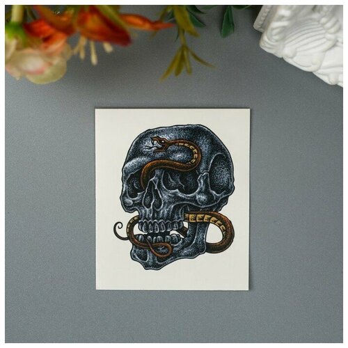 Татуировка на тело "Череп и змея"./В упаковке шт: 4