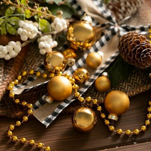 Набор стеклянных ёлочных игрушек шаров17 шт золотые Новый год Подарок Сувенир Рождество