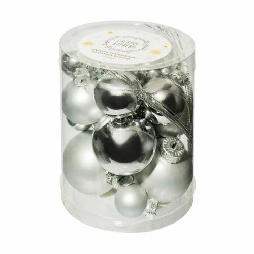 Набор стеклянных ёлочных игрушек шаров17 шт серебристые Новый год Подарок Сувенир Рождество