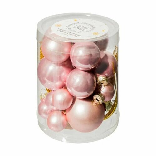 Набор стеклянных ёлочных игрушек шаров17 шт розовые Новый год Подарок Сувенир Рождество