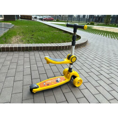 Самокат детский 3 колесный / Колеса светятся / Регулировка высоты руля / Колеса 120 и 90 мм ПУ / сиденье / ручка / 5 в 1 / легкий и надежный /