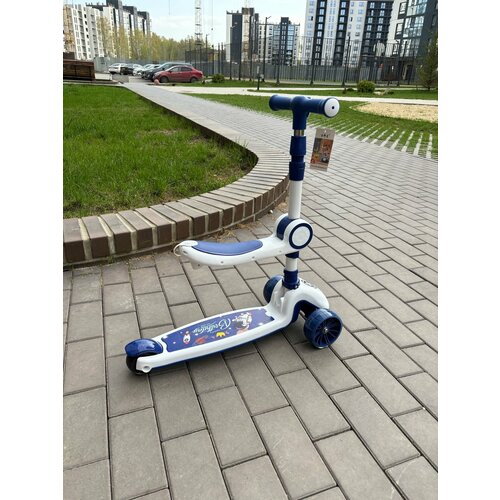 Самокат детский 3 колесный / Колеса светятся / Регулировка высоты руля / Колеса 120 и 90 мм / сиденье / ручка / 5 в 1 / легкий и надежный /