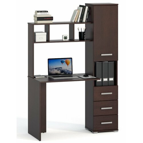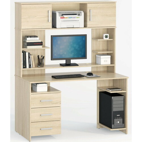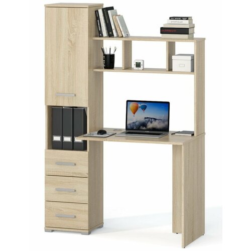 Стол компьютерный В-4 с надстройкой, полками и ящиками левый дуб сонома