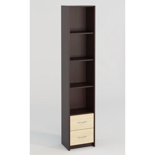 Стеллаж открытый узкий М-8 с двумя ящиками внизу венге / дуб молочный