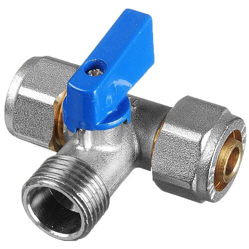 Кран шаровый трёхпроходной для подкл. стац. приб. под мет./пл. трубу 16 х 3/4" х16ц/ш/ц флажок