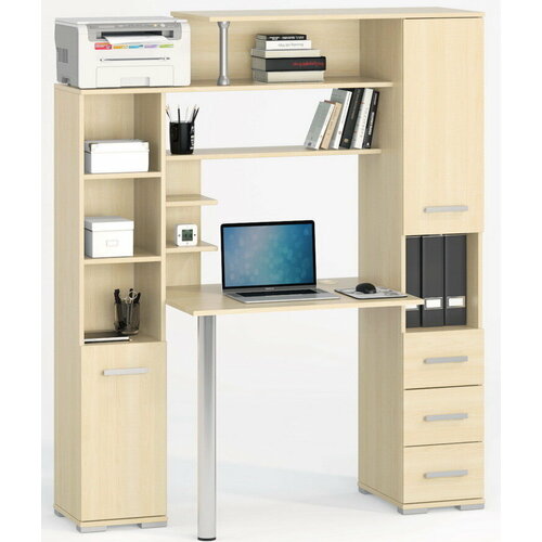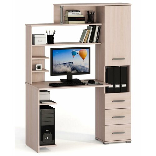 Стол компьютерный со стеллажом и надстройкой В-3 правый дуб молочный
