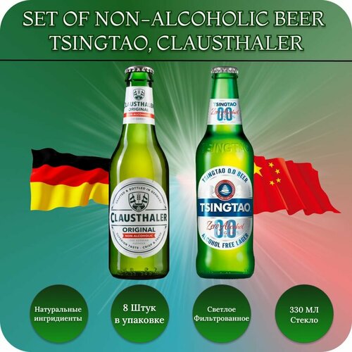 Набор Пиво безалкогольное фильтрованное Clausthaler & Tsingtao (Циндао), 0.33л х 8 бут
