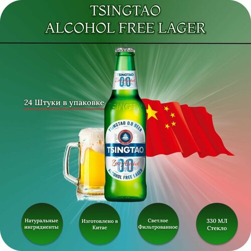 Tsingtao (Циндао) пиво безалкогольное фильтрованное Zero, 0.33л х 24 бут.