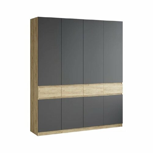 Шкаф 4-х створ. с ящиками Турин (200х51х236 см), ЛДСП Дуб крафт золотой/Графит