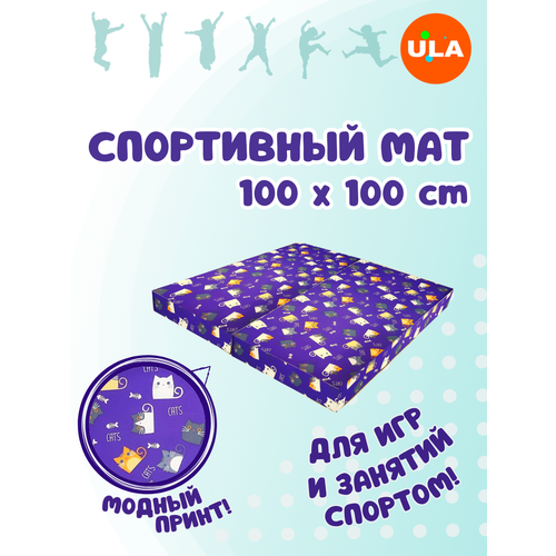 Гимнастический мат 1х1 м, цвет коты фиолет