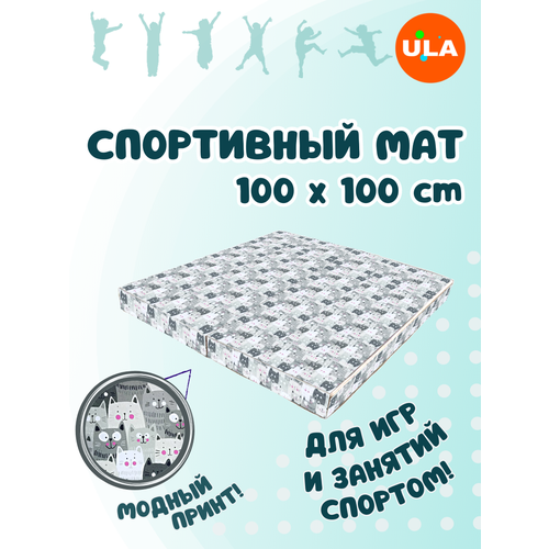 Гимнастический мат 1х1 м с принтом, цвет коты бело-серый