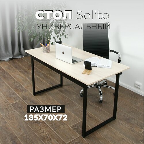 Письменный стол, Компьютерный стол, Игровой компьютерный стол, лофт, 135х70х72 см, Солито, Серия 1350, Акация Лэйклэнд светлая.