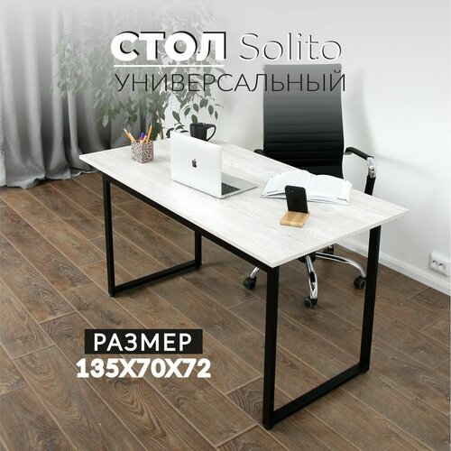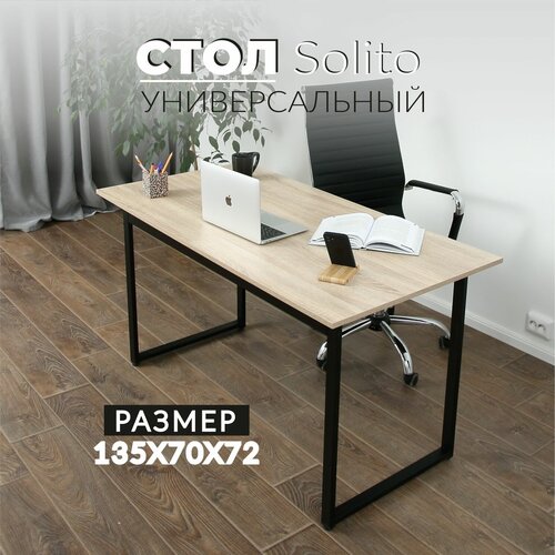 Письменный стол, Компьютерный стол, Игровой компьютерный стол, лофт, 135х70х72 см, Солито, Серия 1350, Сосна Касцина