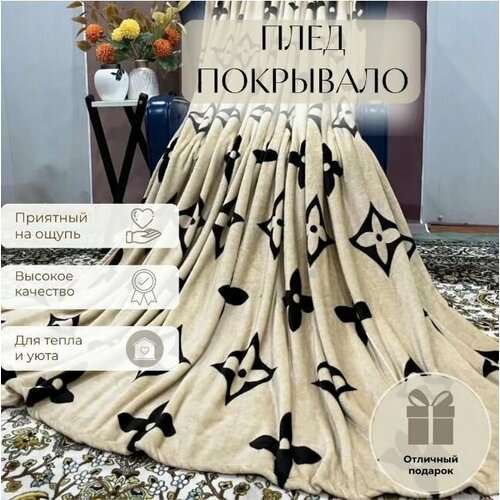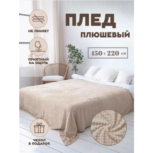 Плед евро Велсофт 200х220, плед-покрывало, бежевый