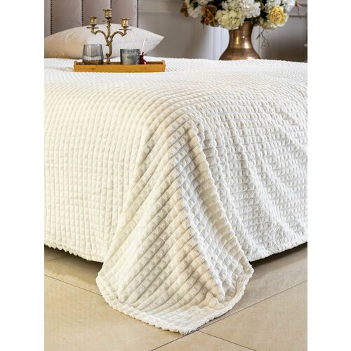 Плед кубик, евро, Плед-покрывало, велсофт, 220х200 см, молочный