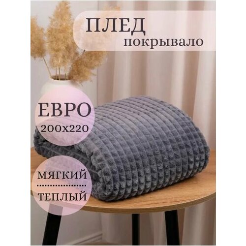 Плед Кубик серый Велсофт 200х220, темно-серый, плед покрывало евро