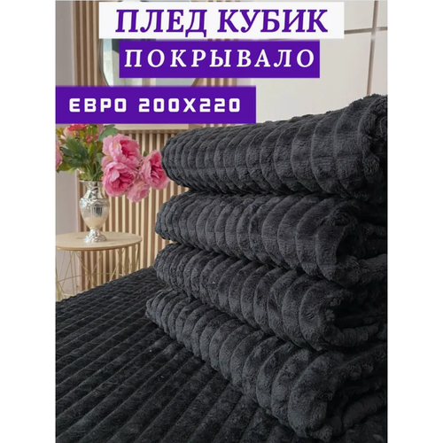 Плед кубик, Плед-покрывало, велсофт, 220х200 см, черный