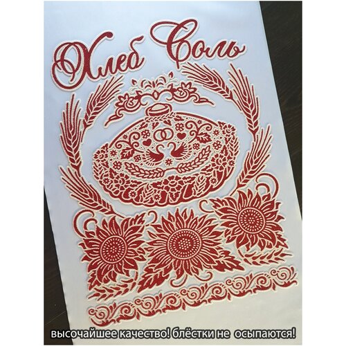 Рушник свадебный для церемонии надпись 3D "Хлеб соль" габардин 150х35 см.