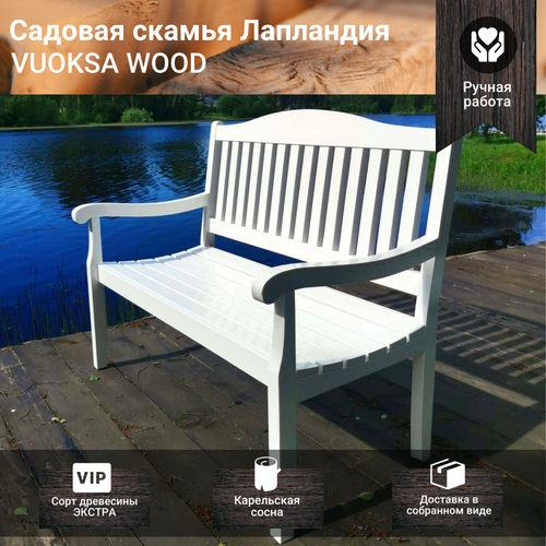 Скамейка садовая, деревянная VUOKSA-WOOD лавочка со спинкой "Лапландия", белая, 120 см.