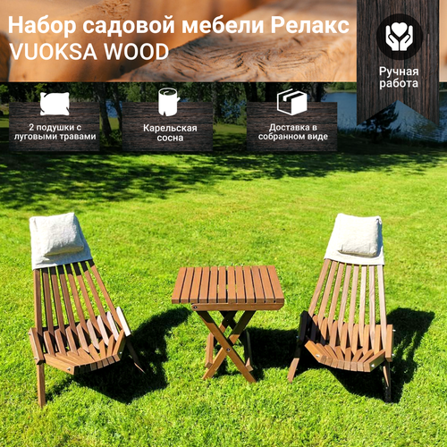 Садовая мебель для дачи из дерева VUOKSA-WOOD набор "Релакс" 2 шезлонга+стол