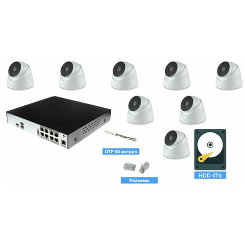 Полный IP POE комплект видеонаблюдения на 8 камер (KIT8IPPOE20MB3_HDD4TB_UTP)