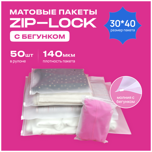 Пакеты матовые с застежкой для хранения одежды, упаковочные пакеты с зип молнией Zip Lock с бегунком EVA, ЭВА 30*40, 50 шт. в упаковке
