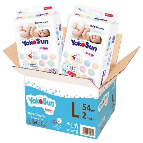 YokoSun подгузники L (9-13 кг), 54 шт., 2 уп.