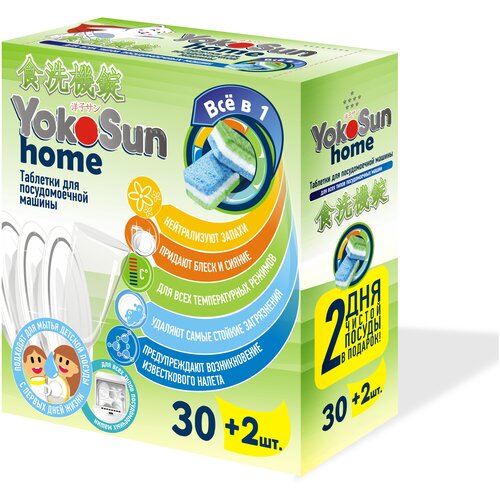 Таблетки для посудомоечных машин YOKOSUN , 32 шт