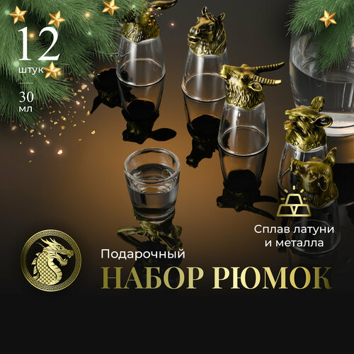 Подарочные рюмки перевертыши, Your Highball, Стопки стеклянные для водки, Набор 12 шт, Бронзовый
