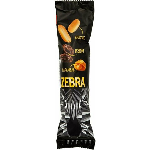 Батончик Zebra вафельный с изюмом и арахисом в карамели, 40 г