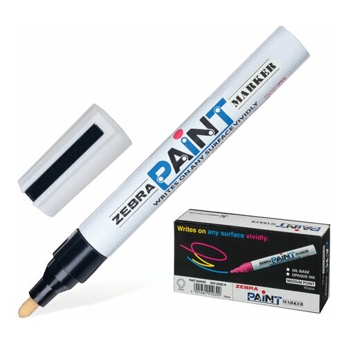 Маркер-краска перманентный (нестираемый) ZEBRA "Paint", 2 мм, черный, круглый наконечник, MOP-200M-BK Комплект : 2 шт.